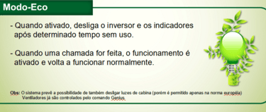 O Modo Eco é um sistema inteligente que desativa alguns componentes do elevador quando não estão em uso.