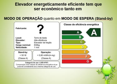 O elevador fica mais tempo parado do que em movimento, e o consumo de energia elétrica do elevador em standby é bastante significativo.
