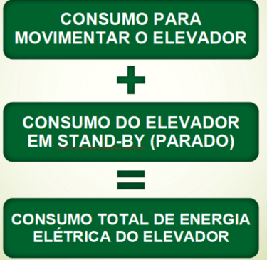 O consumo total de energia do elevador é composto por dois tipos principais de consumos: