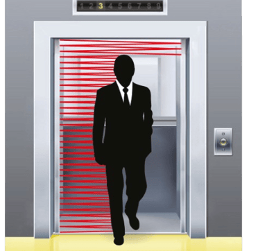 Quando estes feixes são interrompidos o comando é informado de que existe um obstáculo no caminho das portas, de posse dessa informação, as portas do elevador são reabertas de imediato, impedindo o choque sobre o usuário.