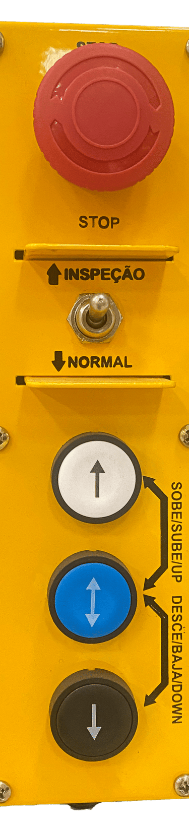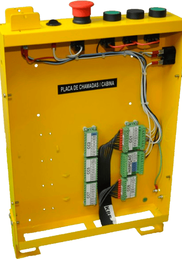 Possui botões para movimentação da cabina em ambos sentidos; subida e descida.