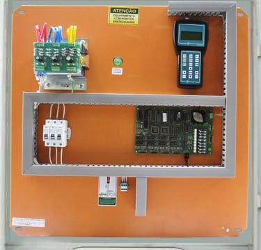 Possui uma interface com teclado e display de cristal liquido, que permite a programação de diversos parâmetros bem como a visualização de diversas funções;