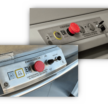 Para segurança as plataformas possuem "limite de bandeja", dispositivo esse localizado abaixo da cabine da plataforma. Ao acioná-lo evita que a plataforma se movimente para descer.