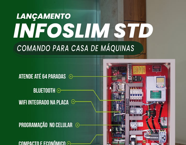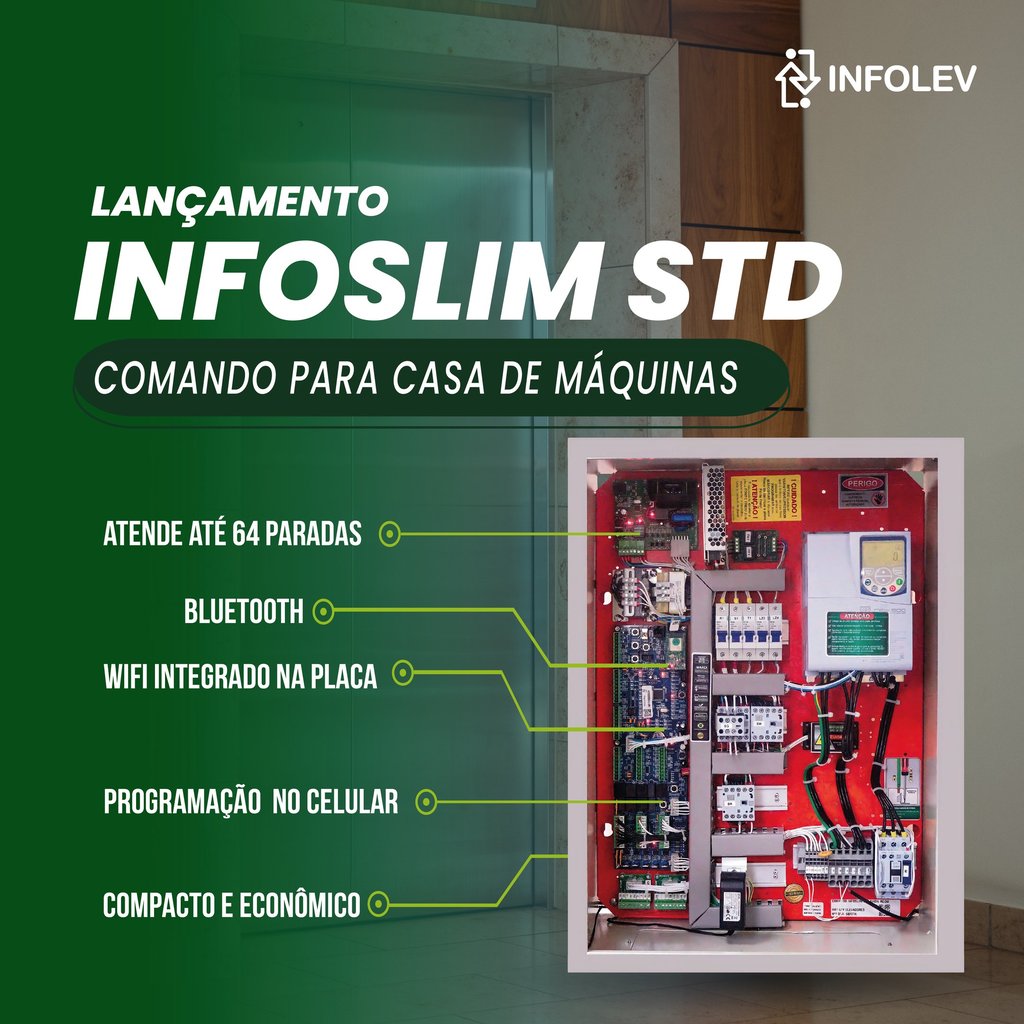 Com o Infoslim STD, a Infolev demonstra ainda mais o seu compromisso contínuo com a inovação e a excelência. Em um mundo cada vez mais conectado e tecnológico, o Infoslim STD abre caminho para elevadores mais rápidos, seguros, confortáveis e eficientes.