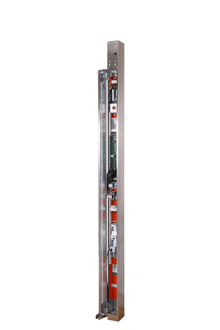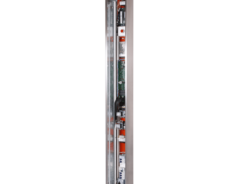 Infoslim: Projetado para operar sem casa de máquinas, com instalação direta no batente do elevador.