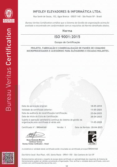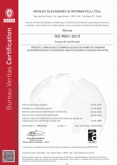 Desde 1997, a Infolev é certificada na ISO 9001, reconhecida nacional e internacionalmente pelo INMETRO.
