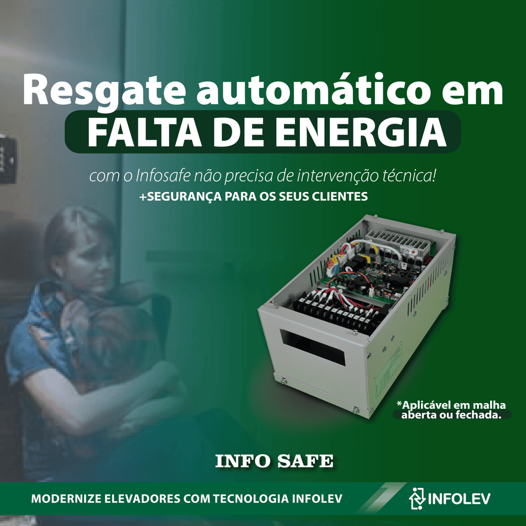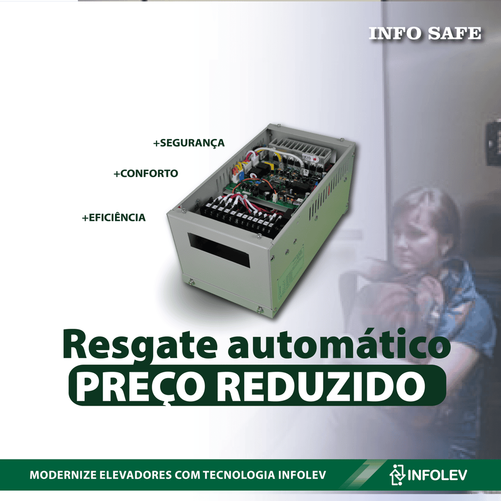 O sistema INFO SAFE proporciona uma resposta imediata diante da falta de energia elétrica, permitindo a continuidade da viagem até o andar mais próximo. Sua agilidade reduz significativamente o tempo que os passageiros passam retidos, impedindo o desconforto de ficar preso dentro da cabina do elevador por muito tempo. E o melhor: agora, estamos com preços reduzidos!