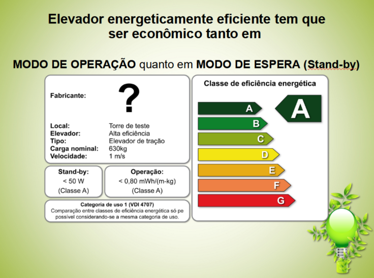 O elevador fica mais tempo parado do que em movimento, e o consumo de energia elétrica do elevador em standby é bastante significativo.